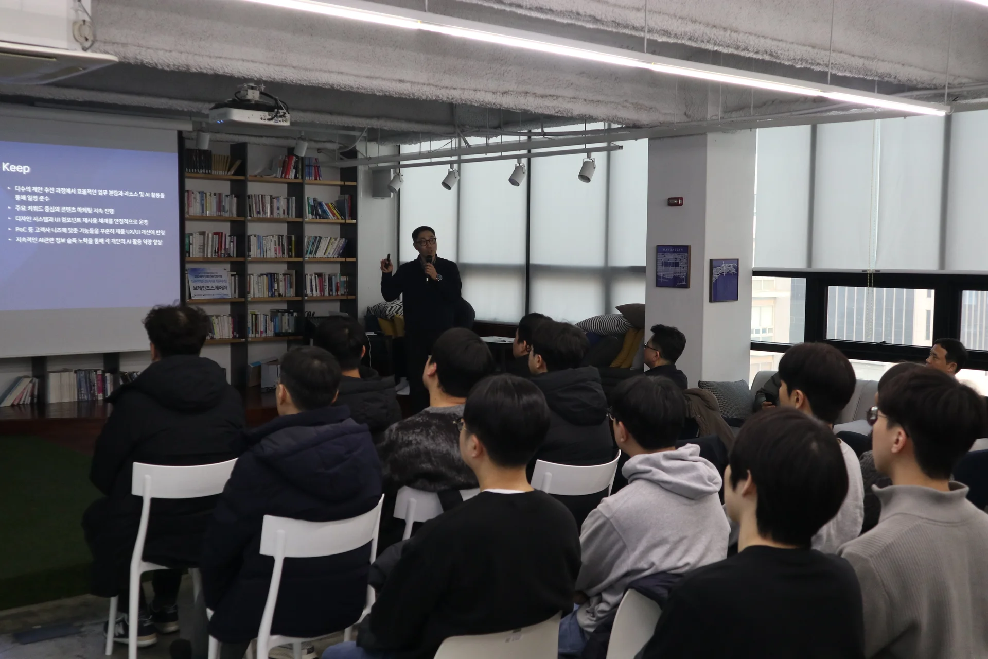 모든 본부와 팀의 발표가 끝난 후, 선근 님(CEO)의 2025년 총평 및 2026년 경영 전략 공유가 이어졌습니다. 선근 님은 “올해 우리는 급변하는 시장 환경 속에서도 치타를 시장을 선도하는 제품으로 고도화하고, 가젤 RAG와 세렝게티 AI Agent Studio를 통해, AI 에이전트 서비스 구축 및 운영을 위한 완벽한 라인업을 갖추는 데 성공했다”고 평가했습니다.