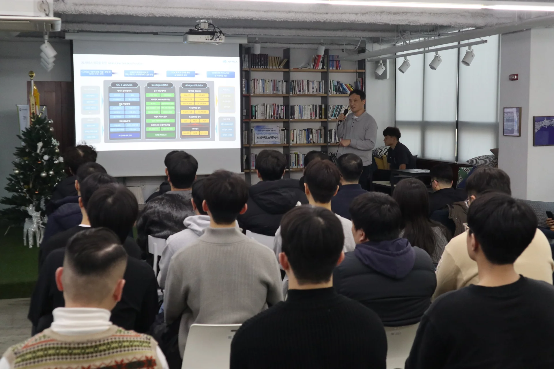 태현 님은 "이제 에이프리카는 클라우드부터 ML/LLMOps, AI 에이전트, 서비스 운영까지 이어지는 AI 풀스택(Full-Stack) 아키텍처를 완성했다"며, "내년에는 이를 바탕으로 2026년에는 우리의 기술력과 노하우를 표준화된 서비스 모델로 체계화하여, 고객이 더 쉽고 빠르게 도입할 수 있는 독보적인 솔루션 기업으로 도약하자"며 발표를 마무리했습니다.