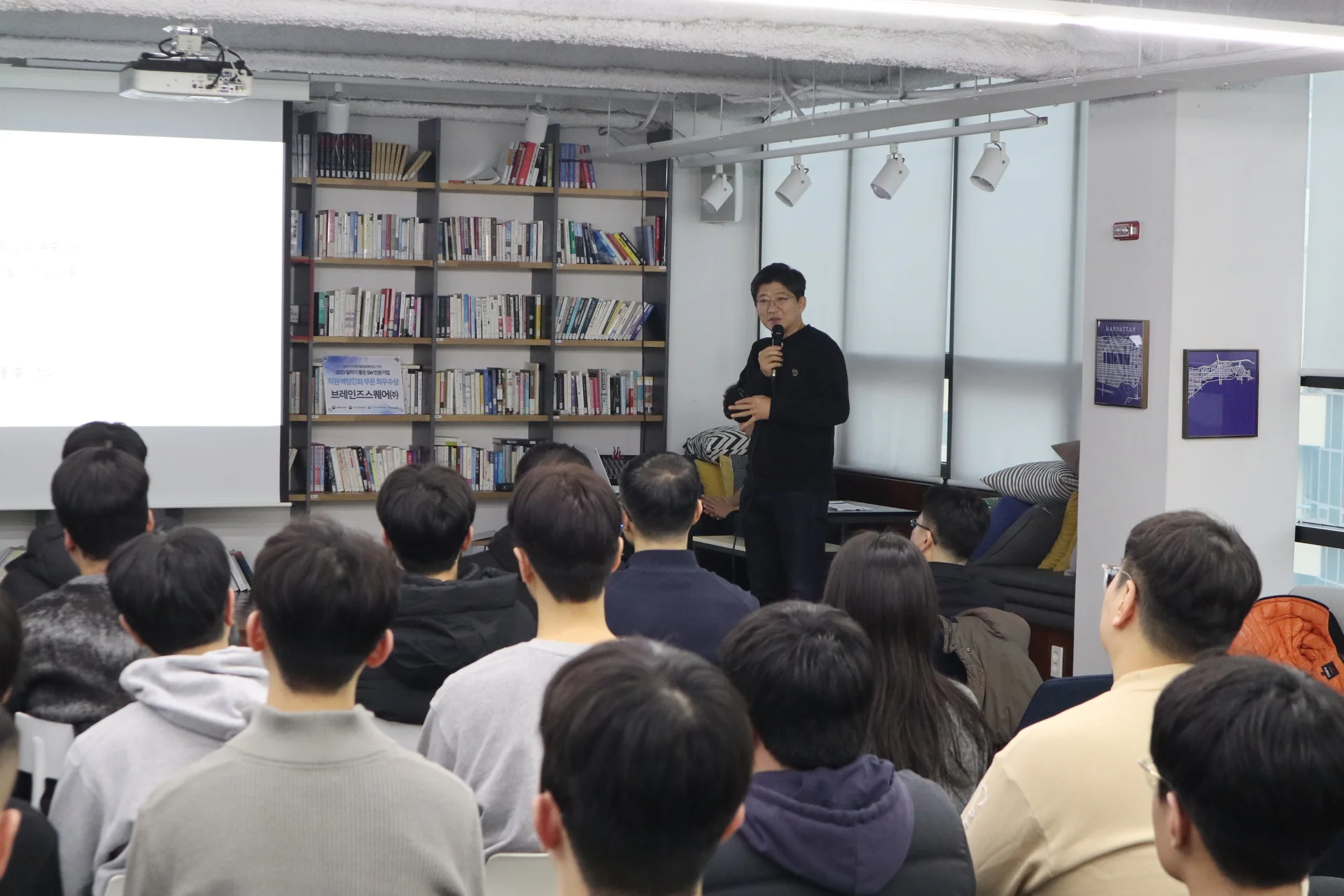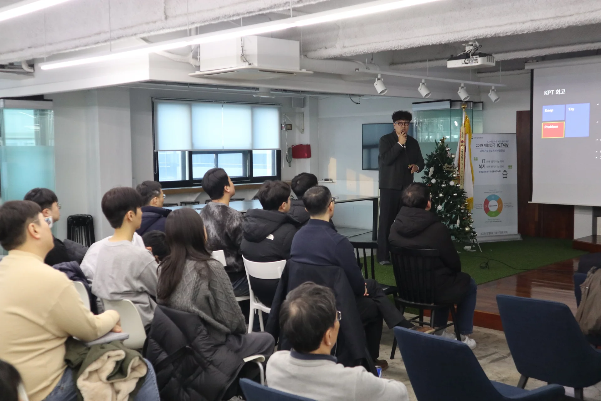 마지막으로 경영지원실 심현보 님의 발표가 진행됐습니다. 현보님은 가족친화기업인증 병역지정업체 선정, 그리고 구성원들의 만족도가 높았던 교육 프로그램 운영 등의 성과를 공유했습니다.