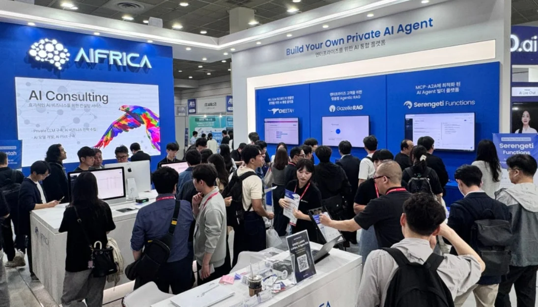 이번 행사에서 에이프리카 부스는 Private AI Agent의 실제 도입 전략, 폐쇄망 환경에서의 모델 학습 및 운영 구조, 그리고 기존 시스템과의 연계 방안 등 실제 현장에서 마주할 수 있는 과제들에 대해 실무 중심의 깊이 있는 상담과 기술 논의가 활발히 오간 자리였습니다.