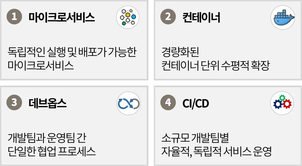 그렇다면, 클라우드네이티브에서 말하는 신속한 애플리케이션 개발을 위해서는 어떤 요소가 필요할까요?
